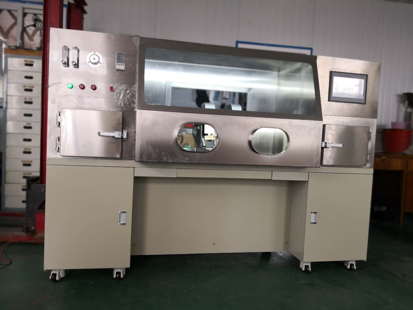 ● 結(jié)構(gòu)合理的手套箱系統(tǒng)——開啟、維修簡單;帶有進出口傳遞箱,與外界有效隔離;