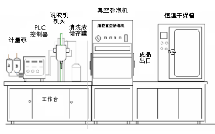 混膠機(jī):環(huán)氧樹脂膠正常使用時(shí),為雙組份膠,需要按照工藝規(guī)定的比例進(jìn)行混合,并需要在規(guī)定的時(shí)間內(nèi)完成灌膠,且灌膠的量需要嚴(yán)格控制,一致性要好。